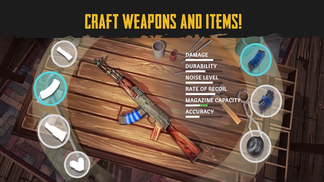 ⚔️ CRAFT WEAPONS AND ARMOR Our survival game is unpredictable: the victim can always become a hunter in prey day. Create powerful weapons inspired by zombie apocalypse games like the AK-47, M4, UZI, Glock, etc., and always be ready to fight to survive in our zombie survival game!